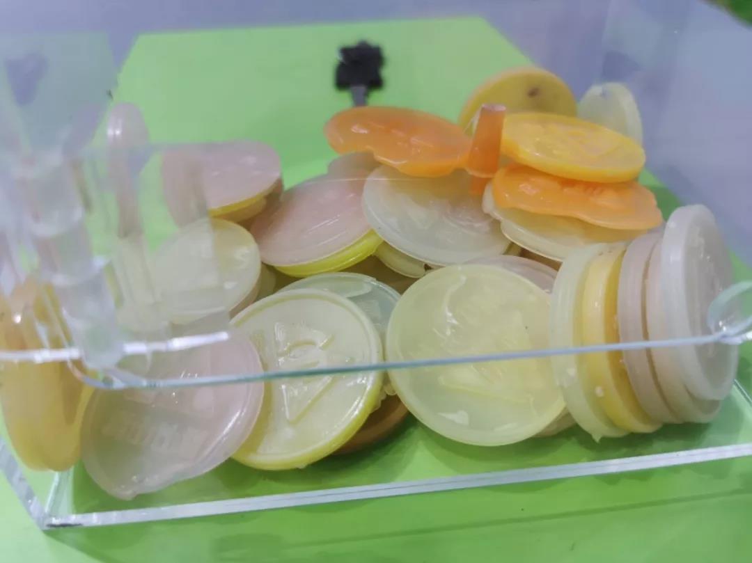 According to the on-site staff, after the tea cup is recycled, it is broken first, then cleaned, heated and melted by a hot press, and then entered the injection molding machine for reshaping.